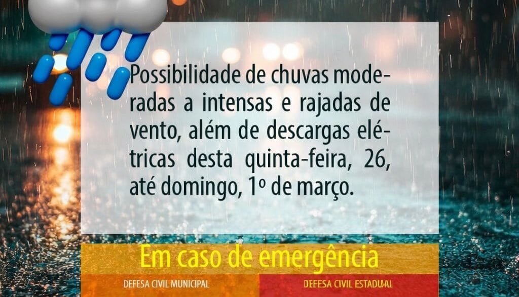 Diante desse cenário, a Defesa Civil recomenda atenção redobrada da população, especialmente para moradores de áreas sujeitas a alagamentos, enxurradas e regiões com histórico de ocorrências relacionadas a eventos meteorológicos adversos.