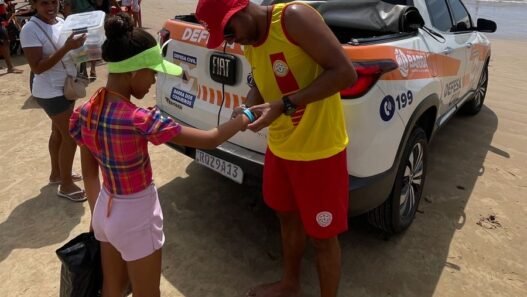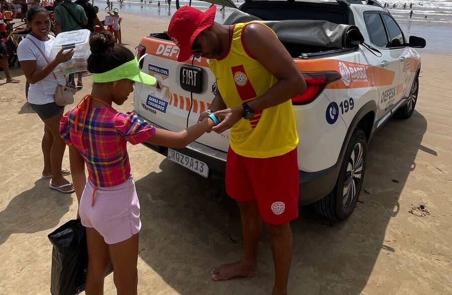 Com o apoio da equipe de guarda-vidas, foram distribuídas pulseiras de identificação para as crianças, contendo informações que facilitam o contato rápido com os responsáveis em caso de afastamento. Além disso, foram entregues panfletos com orientações de segurança e conscientização aos pais e responsáveis, reforçando a importância da atenção redobrada em locais de grande movimentação.