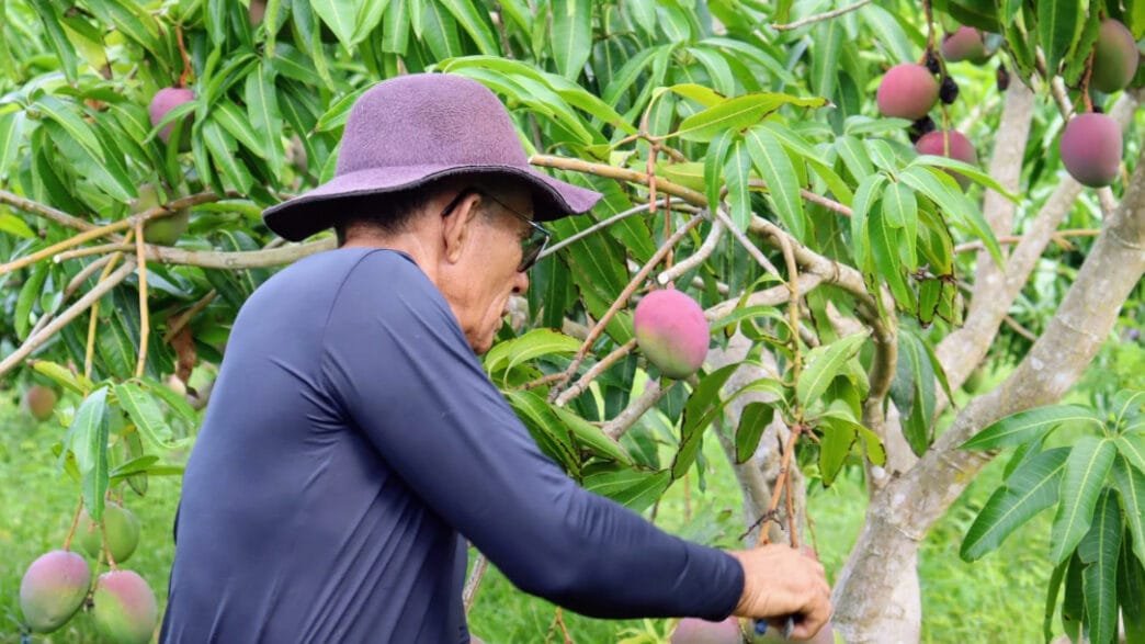 “Eles não conheciam o procedimento e o pessoal da Codevasf falou com a gerência do nosso perímetro, que autorizou que eu viesse para cá junto com eles para que eu pudesse demonstrar na prática como era o processo do uso da calda. A minha dúvida na época era se daria certo na cultura da manga, porque eu nunca tinha usado. Fizemos 400 litros e depois foi mais 800. Tudo foi aplicado em 971 pés de manga”, recordou o técnico do perímetro Califórnia, Luiz Roberto.